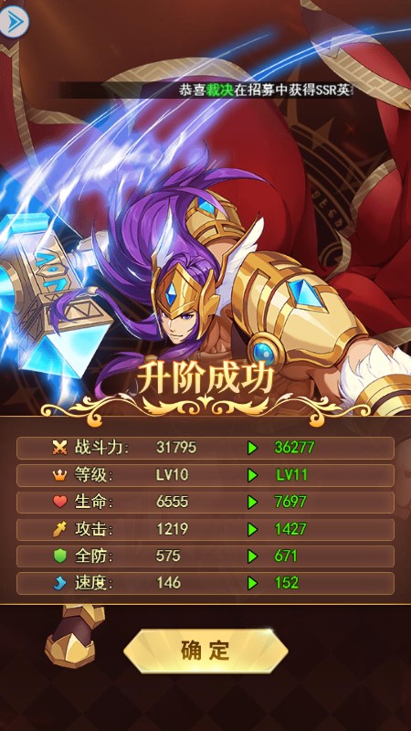 进行英雄的强化并穿戴装备。推荐将资源先给SSR品质的英雄进行升级和升阶。